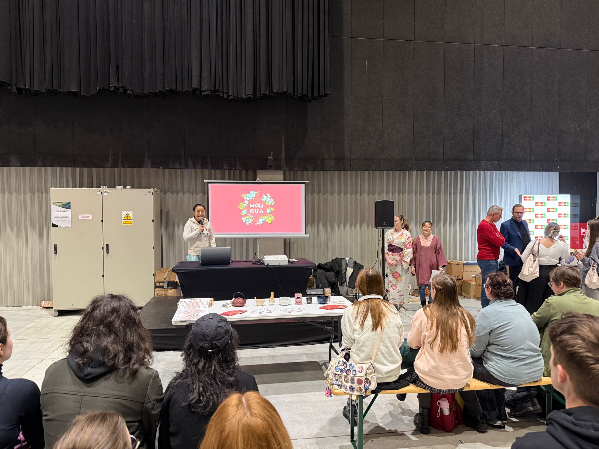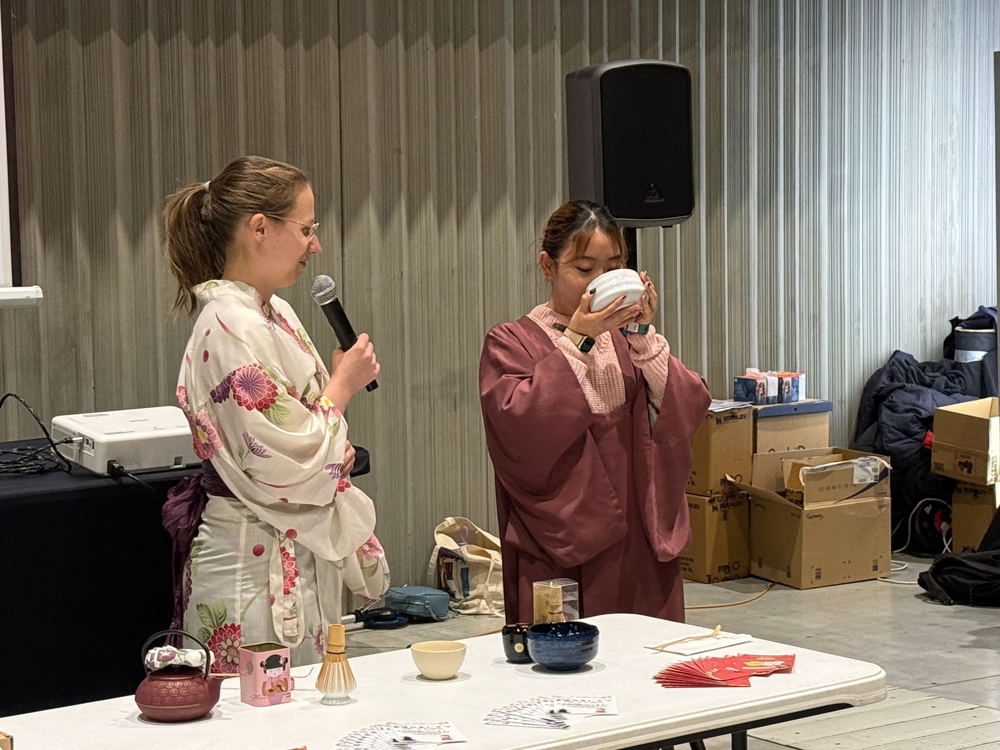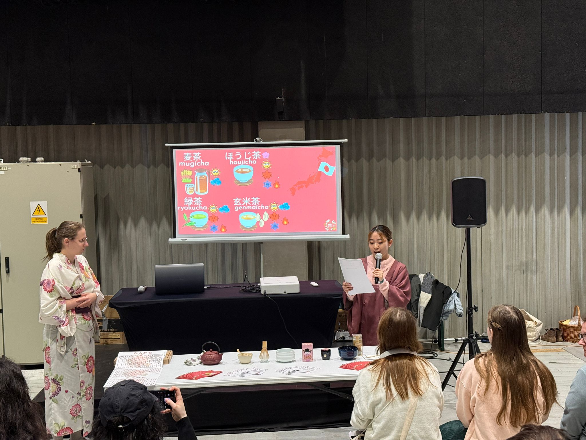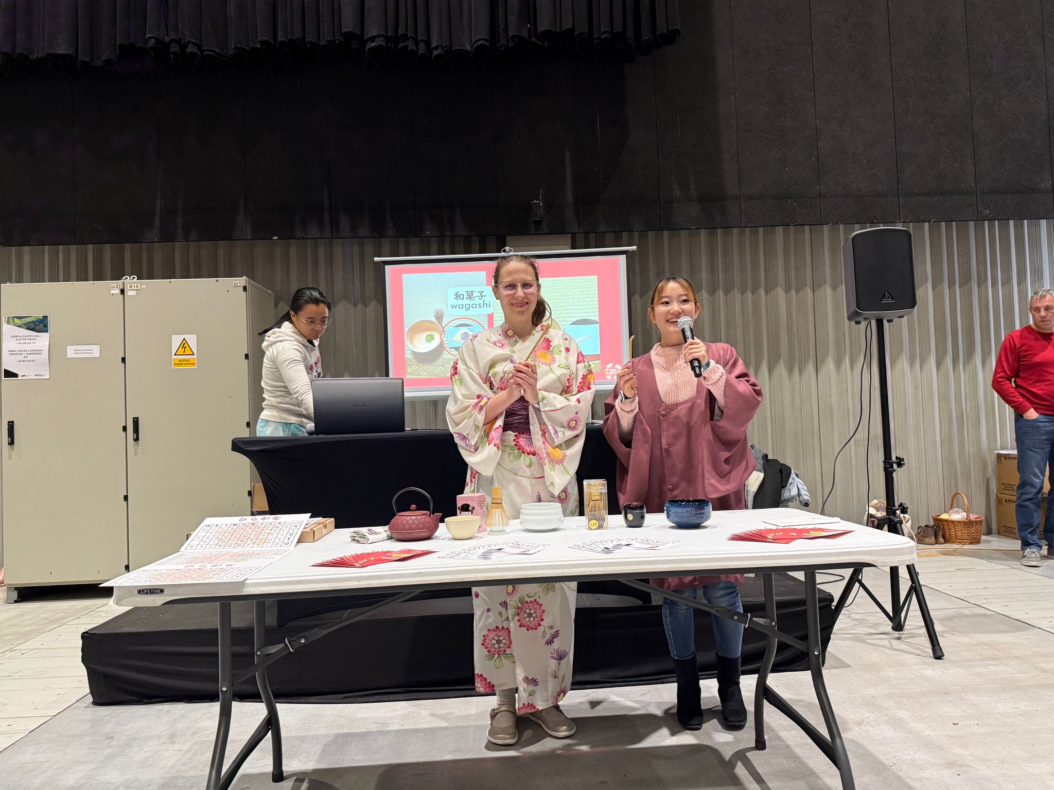 W sobotę nasze lektorki języka japońskiego, Ola Woryna oraz Nanami, zaprezentowały japońską ceremoniałę herbacianą – zarówno w teorii, jak i w praktyce. Uczestnicy mogli poczuć klimat tradycyjnej japońskiej gościnności.