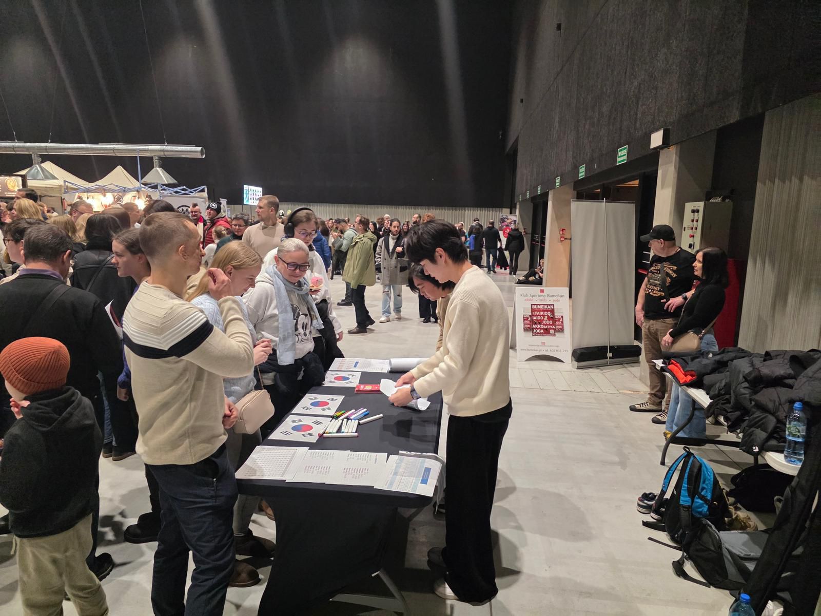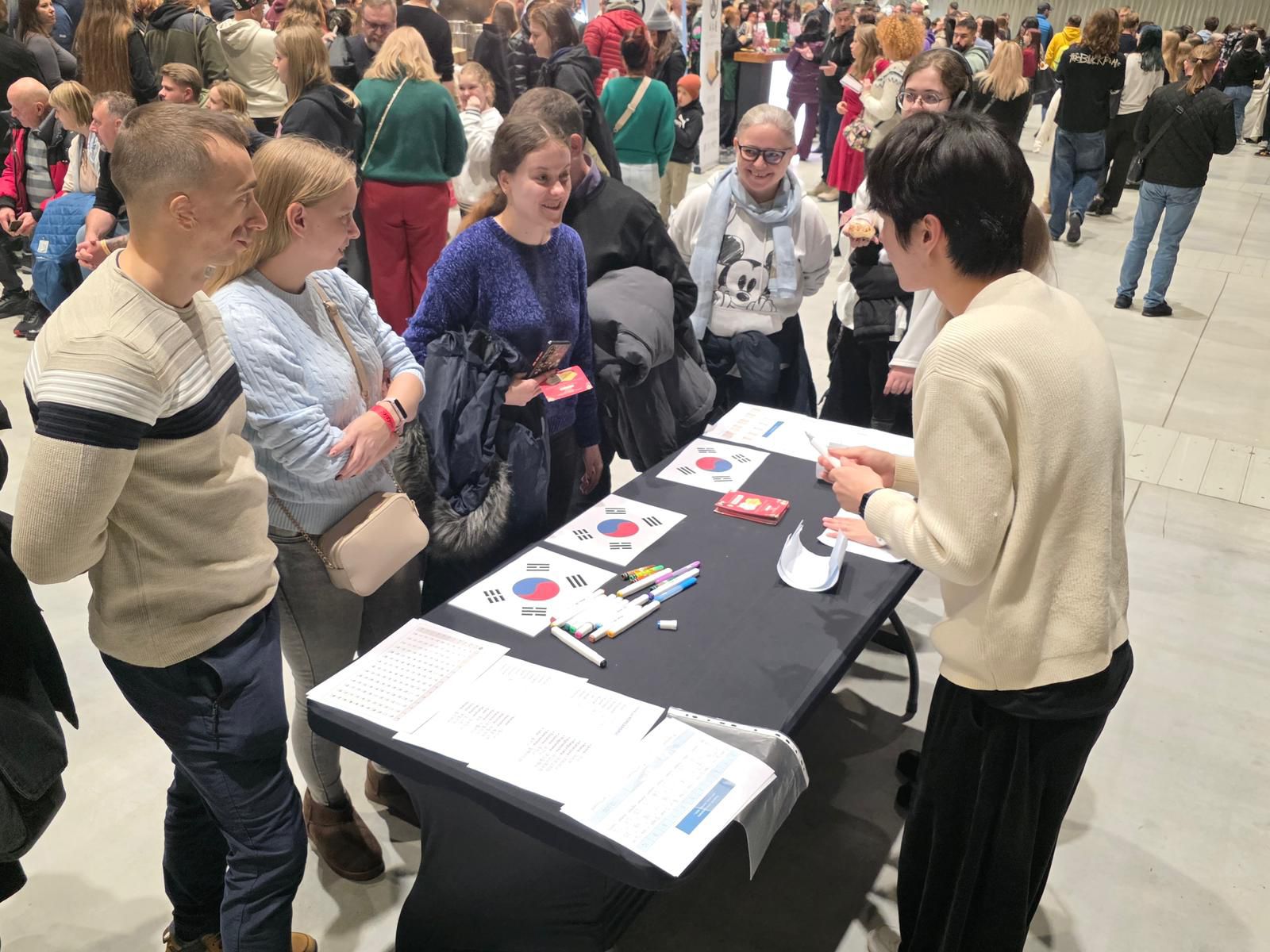 W niedzielę nasi lektorzy języka koreańskiego, Daeop Kim oraz Dohun Lee, przygotowali ciekawą prezentację o Korei Południowej, a także pisali imiona odwiedzających po koreańsku, co cieszyło się ogromnym zainteresowaniem.
